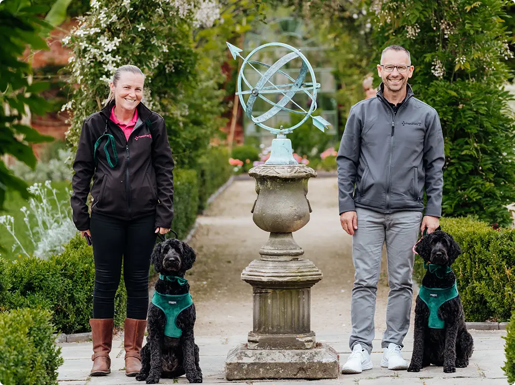 "Jane & Daz looked after our Irish Setter Rusty and chaperoned him to our wedding and did a fantastic job! They communicated with us right up to the day and allowed Rusty to go round and meet them on multiple occasions to ease him in to his weekend away! Daz chaperoned Rusty and did an incredible job at keeping him calm, slobber free and looking handsome for his big moment walking the rings down the aisle and all the photos afterwards! Jane kept us updated regularly with how he was getting on so we never felt worried! Jane & Daz are wonderful and we couldn’t recommend them enough! Thank you Jane & Daz!"