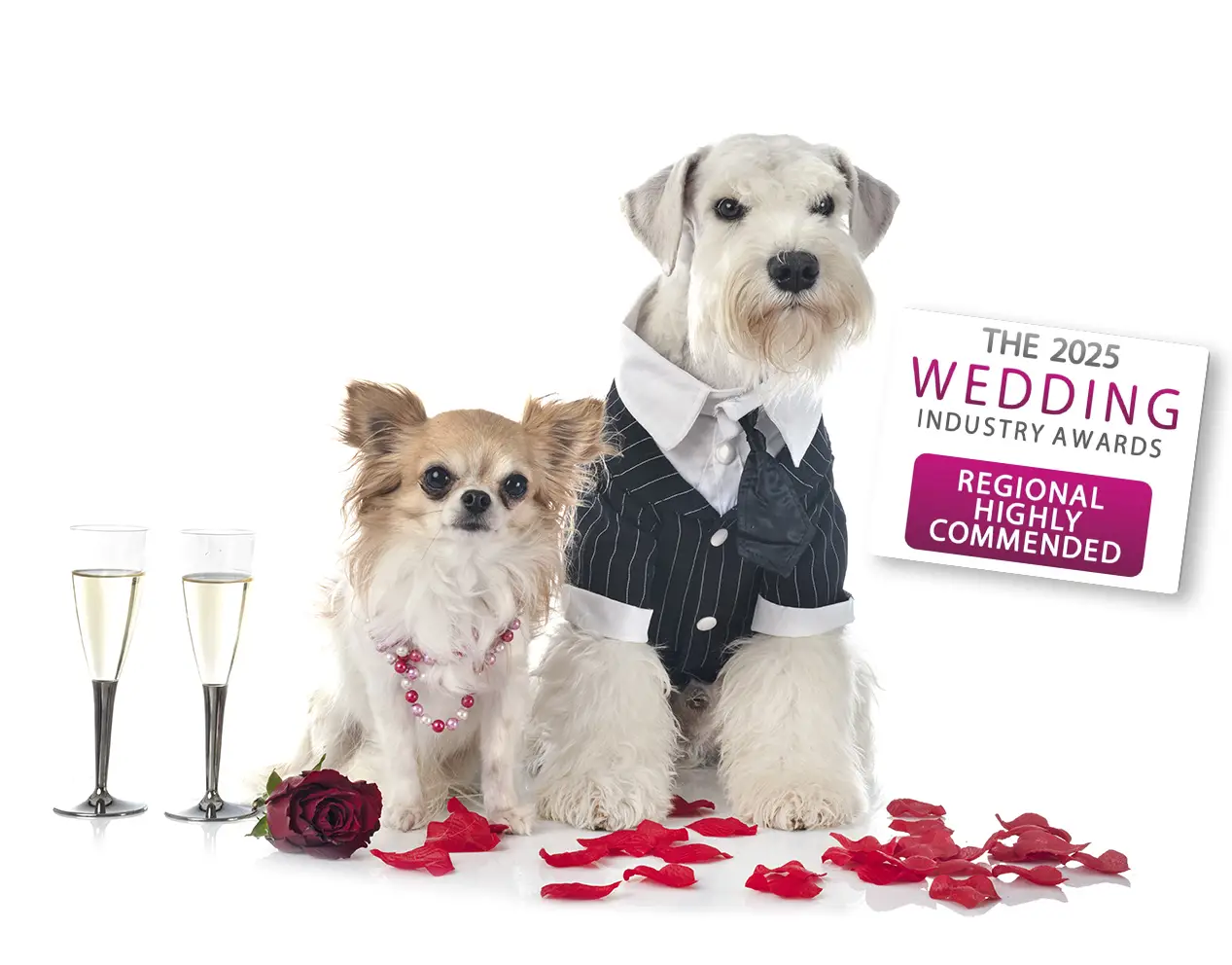 "We cannot recommend Paws2Party enough, without Jane and Darryl we wouldn’t have been able to have our 2 dogs at our wedding. They ensured that they were well looked after, brushed, tidy and dressed in their dog suits on the day of the wedding.